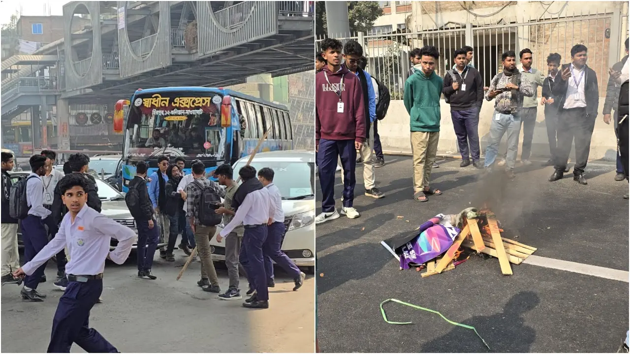 সহপাঠী সাকিবুল হত্যার বিচার ও আসামিদের দ্রুত গ্রেপ্তারের দাবিতে এলিভেটেড এক্সপ্রেসওয়ের পর এবার রাজধানীর ব্যস্ততম ফার্মগেট মোড়ও অবরোধ করেছেন শিক্ষার্থীরা। এতে করে গুরুত্বপূর্ণ এই দুই সড়কেই যানচলাচল বন্ধ হয়ে গেছে। বুধবার (১৪ জানুয়ারি) বেলা পৌনে বারোটার দিকে প্রথমে এলিভেটেড এক্সপ্রেসওয়ে হয়ে ফার্মগেট খামারবাড়ি অভিমুখের অংশ অবরোধ করেন শিক্ষার্থীরা। পরে সাড়েRead More →